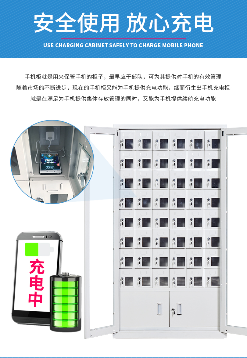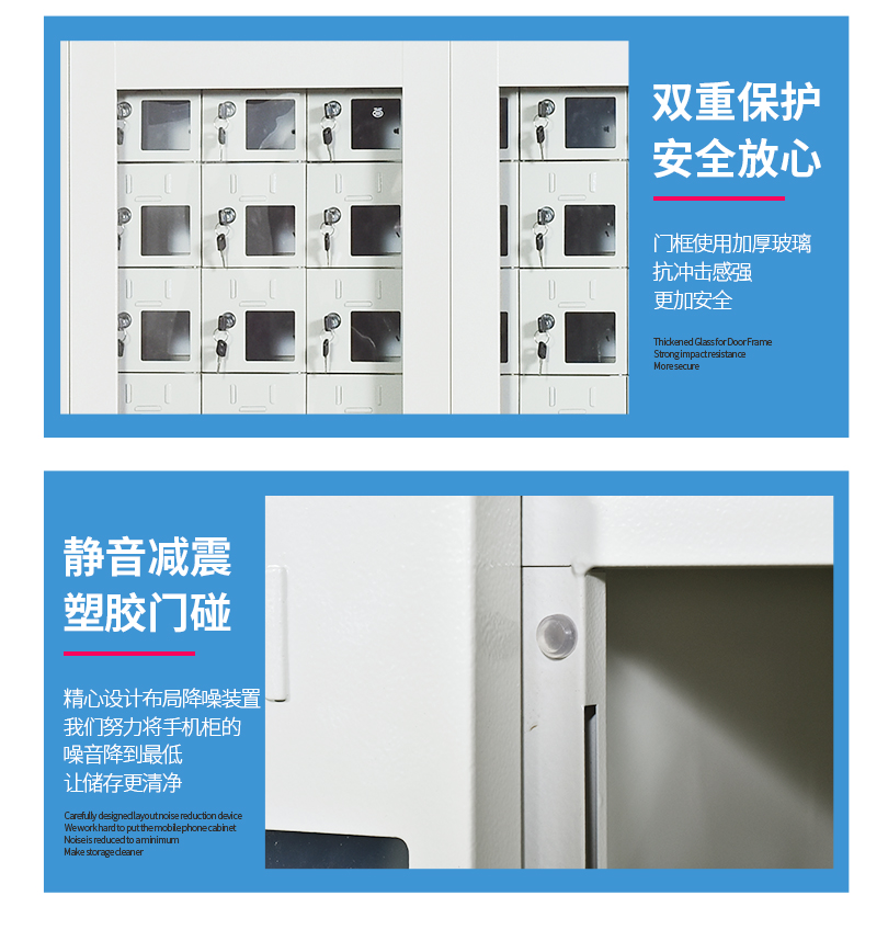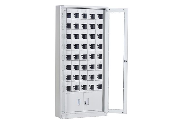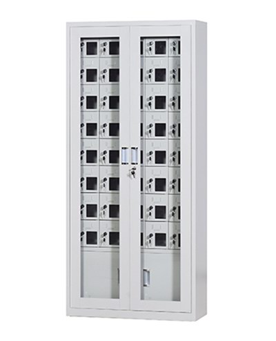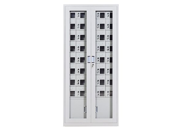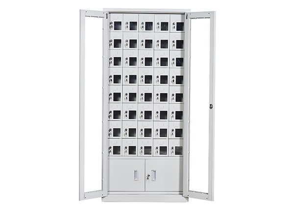 手機(jī)保密柜正面為對開金屬邊框玻璃大門,便于觀察柜內(nèi)情況,堅(jiān)固透亮,美觀大方。